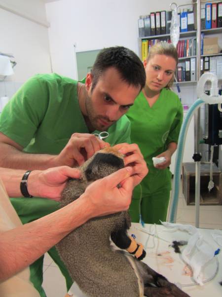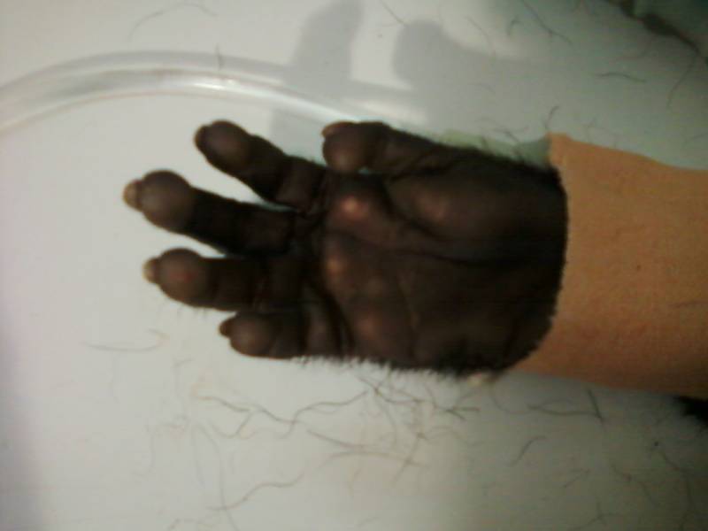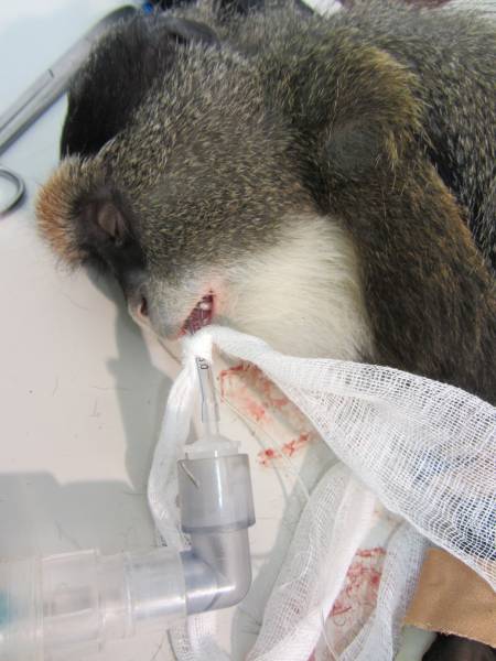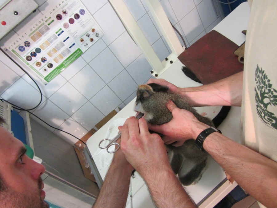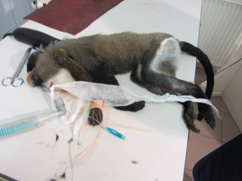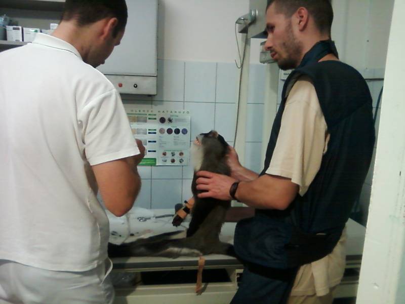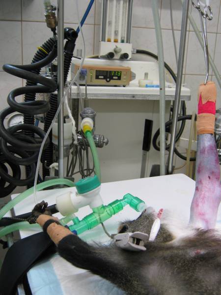 A mellső végtagjának a sérülését úgy szedte össze, hogy kinyúlt a tácson keresztül, majd egy másik rácsrészen próbált visszanyúlni. sajnos túl makacs ahhoz, hogy korrigálja a hibáját, és addig erőltette a lehetetlen dolgot, amig el nem törte a kezét.